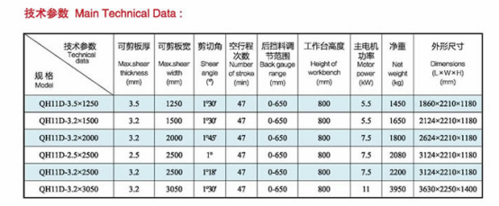 Performance characteristics of QH11D series precision shearing machine: